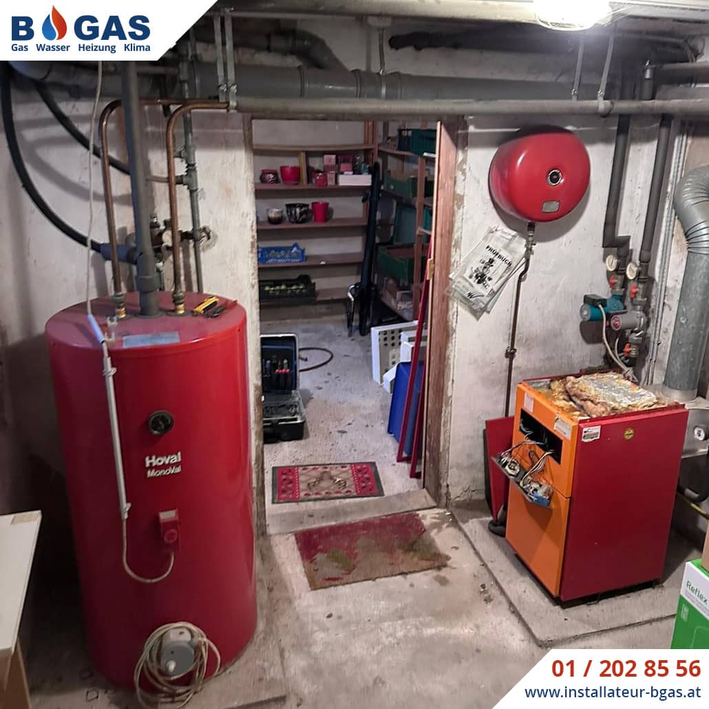 - Abbau & Entsorgung: Der alte Hoval-Kessel und der 200l Monoval Speicher wurden komplett demontiert und fachgerecht von unserem Monteur Memo und seinem Helfer Ali entsorgt.