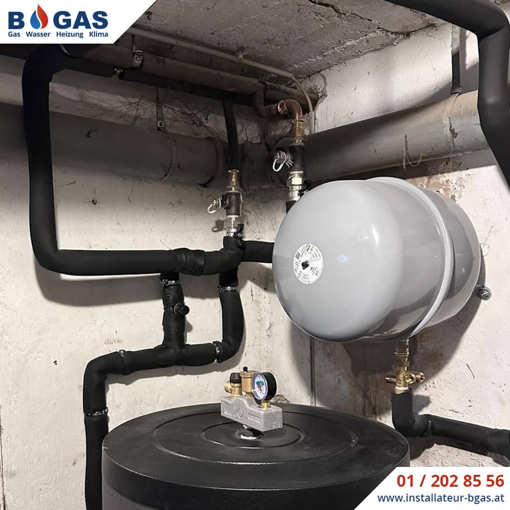 - Anlagenschutz: Ein Reflex 35l Ausdehnungsgefäß sowie ein Caleffi Magnet- und Schlammabscheider schützen die Wärmepumpe vor Verunreinigungen aus dem alten Rohrnetz.