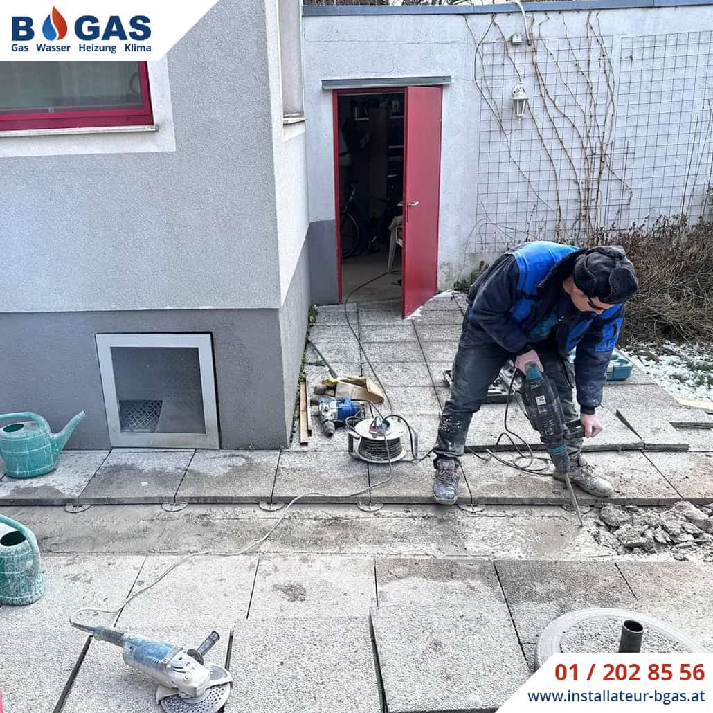 - Baumeister-Arbeiten: Damit die neue Außeneinheit sicher steht, hat Ahmet unser Fundamentbauer sämtliche Fundament-, Grab- und Betonierarbeiten durchgeführt.